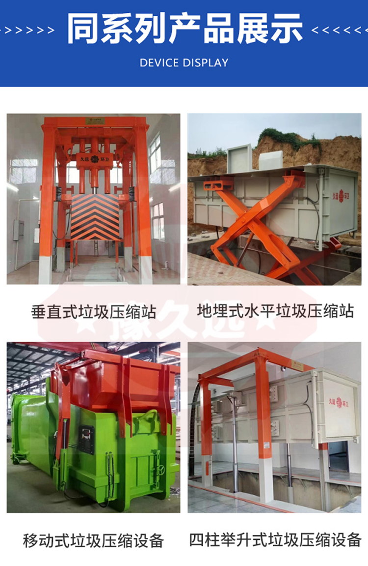 垂直式垃圾壓縮設備在原立式壓縮站的基礎上將單杠直壓變為三缸同壓,大大降低了房屋高度,科技含量高;采用12只液壓油缸控制運行,操作更加靈活簡便,性能穩定。該產品適用于城鎮生活垃圾的儲存、壓縮和轉運,通常可設置在靠近街道及居民生活小區內,是當今生活垃圾處理的理想設備。